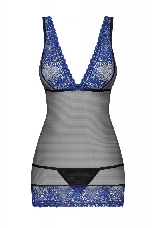 Чарующий пеньюар из коллекции "Obsessive" в изумительном сочетании черного и синего цветов - это лучшее нижнее белье!