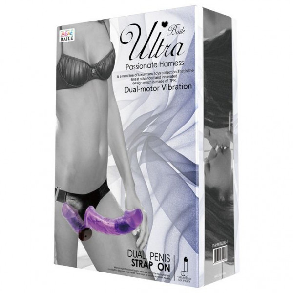 Страпон с вагинальной втулкой "Ultra Passionate Harness" с вибрацией, фиолетовый